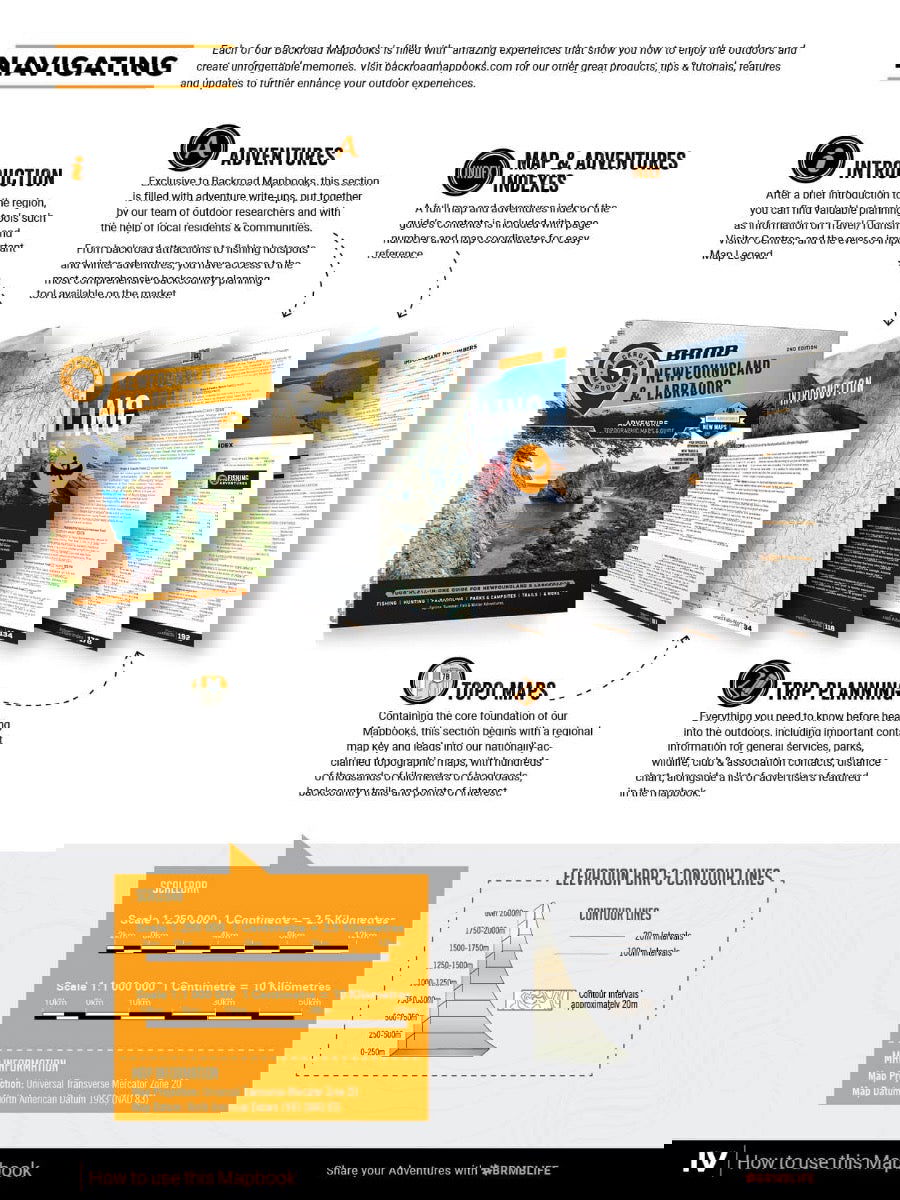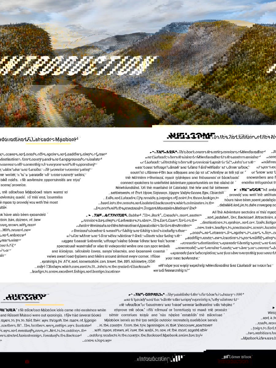 The most easterly province of Canada, Newfoundland and Labrador is a land unlike any other. The Newfoundland and Labrador Backroad Mapbook covers the entire Atlantic province, from the mainland region of Labrador to the proud island of Newfoundland. Here you will discover St. John’s, one of North America’s oldest cities with a European history dating back to the 16th century, and the most easterly point of the entire continent, in Cape Spear. Newfoundland and Labrador boasts the UNESCO World Heritage Site of Gros Morne National Park, where Mother Nature unveils the earth’s mantle amidst spectacular cliffs and glacial valleys.